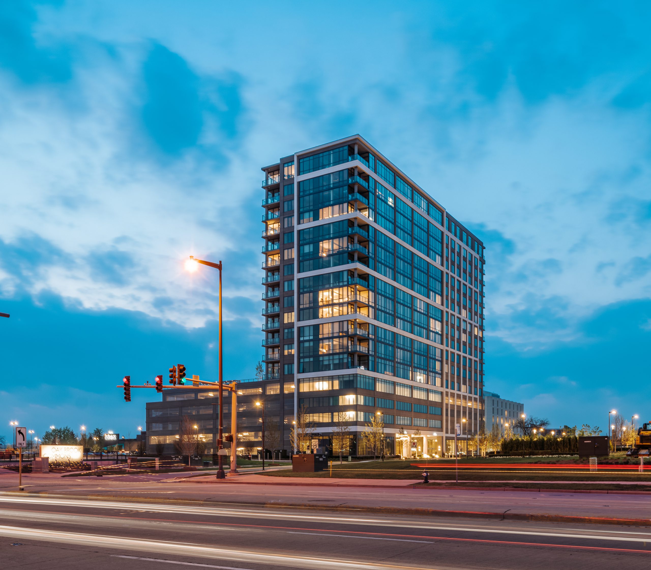One Oak Brook Commons is a 17-story, Class-A high-rise building with 250 luxury apartment homes and 420 parking stalls within a secured private parking deck. Amenities in One Oak Brook Commons include a heated pool, lounge area, library, and co-working space with private study rooms, pet spa, covered dog run, sports lounge with golf simulator and billiards, and outdoor kitchen. Additionally, tenants have access to a high-end fitness center with a yoga studio.